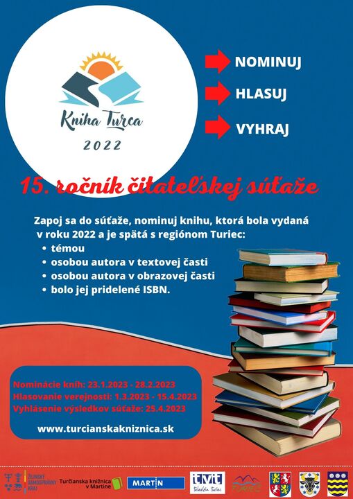 Turčianska knižnica v Martine v zriaďovateľskej pôsobnosti Žilinského samosprávneho kraja vyhlasuje 15. ročník ankety o najkrajšiu a najzaujímavejšiu regionálnu knihu KNIHA TURCA 2022.