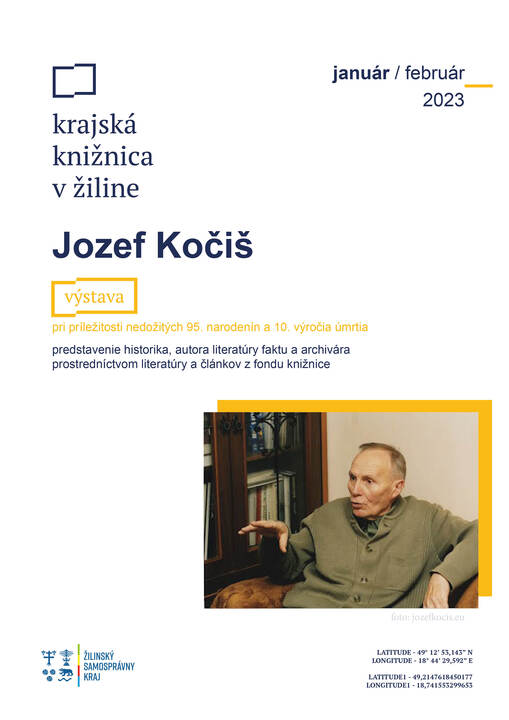 Výstava pri príležitosti výročia nedožitých 95 narodenín a 10.výročia úmrtia predstaví osobnosť Jozefa Kočiša prostredníctvom literatúry a článkov z fondu knižnice.