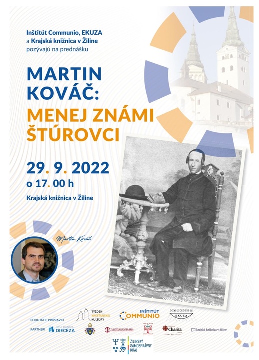 Inštitút Communio organizuje opäť Týždeň kresťanskej kultúry v Žiline (www.tkkza.sk) so snahou priniesť jednotlivé podujatia mimo sakrálnych priestorov. 29. septembra o 17:00 sa bude v Krajskej knižnici konať prednáška Mgr. Martina Kováča, vedúceho ústredného archívu Evanjelickej cirkvi augsburského vyznania na Slovensku, na tému Menej známi Štúrovci.