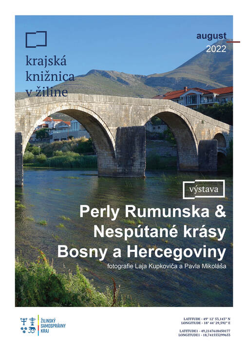 Spoznajte málo známe zákutia Európy na fotografiách autorov Laja Kupkoviča a Pavla Mikoláša. Objavte nespútané krásy Bosny a Hercegoviny spolu s "perlami" Rumunska, ktoré budú vystavené v Krajskej knižnici v Žiline do konca augusta.