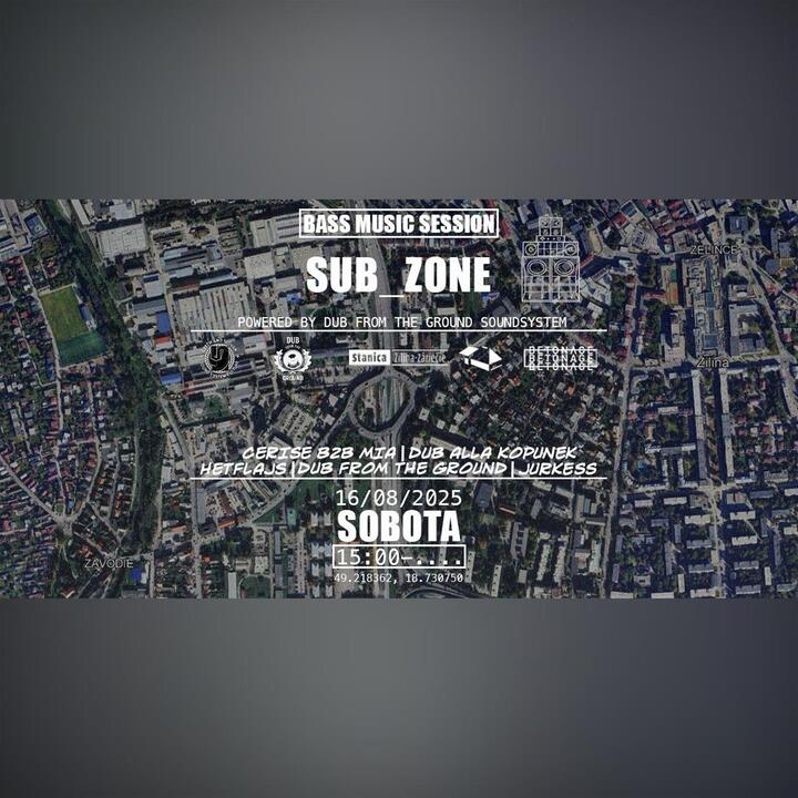 🔊 SUB_ZONE komunita prvýkrát na Stanici! Ide o projekt zameraný na elektronickú hudbu: „prevažne drum and bass a dubstep. Našim cieľom je vytvoriť miesto, v ktorom má priestor nezvyčajný, nemainstreamový a hlavne hlboký zvuk. Kvalitný soundsystem je naša priorita a preto sme oslovili Dub from the ground, slovenské dub vydavateľstvo, ktoré disponuje svojou vlastnou technikou, a ktorú prinášame aj s dávkou hutných trackov do areálu Staničky.“🔊So setmi začíname poobede od 15:00, končíme do 21:00 a na podujatie prispejete komunite SUB_ZONE dobrovoľným vstupným na mieste, ďakujeme.
