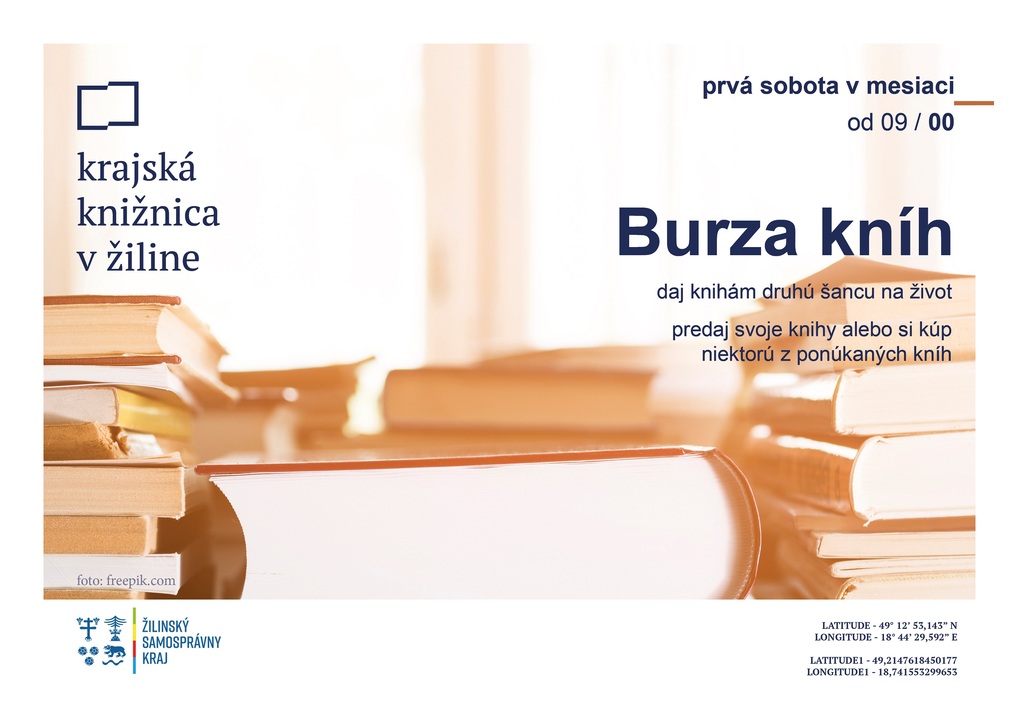 Opäť sa tešíme na záujemcov obľúbenej „Burzy kníh“. Stačí, ak prídete so svojimi knihami a môžete ich ponúknuť na predaj iným knihomoľom, ktorí budú v ten deň v knižnici. Cenu za svoje knihy si určíte vy, my vám ponúkame príležitosť a priestor. V rámci Burzy kníh budú na predaj aj vyradené knižné tituly z našej knižnice. Najbližšie sa na Vás tešíme v sobotu 6.novembra 2021 od 9:00 do 13:00.
