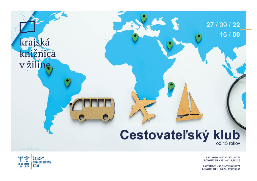Počas každého stretnutia klubu bude prichystaná prezentácia o zaujímavej destinácií so zameraním na kultúru, gastronómiu, prírodu a iné zaujímavosti danej lokality. Inšpirovať sa budeme rôznymi cestopismi a bedekrami, z ktorých si budeme čítať krátke ukážky. Záujemcovia môžu zdieľať vlastné zážitky a skúsenosti z výletov a dovoleniek, či ponúkať odporúčania ostatným členom klubu. Klub je vhodný pre všetkých cestovateľov od 15 rokov a bude sa konať raz mesačne, prvé stretnutie bude 27. septembra 2022 o 16:00.