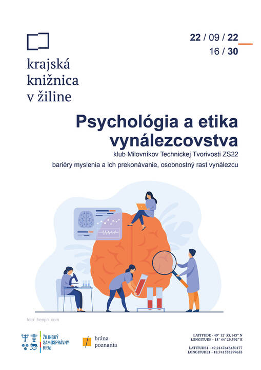 Vo štvrtok 22. septembra o 16:30 bude predstavená psychologická zotrvačnosť ako bariéra tvorivého myslenia a ukážeme si aj spôsoby jej prekonávania. Povieme si čím je práca vedca a bádateľa príťažlivá a upozorníme taktiež na úskalia súvisiace s touto prácou. Zdôrazníme si etické a morálne hodnoty, ktoré sú potrebné pre osobnostný rast úspešného vynálezcu.