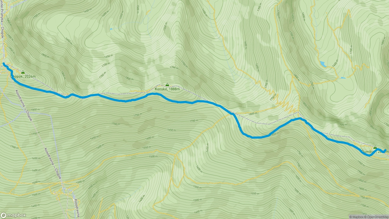 Štart a cieľ: Výstupná stanica Funitelu na Chopku 2004 m n.m. Trasa: po červenej turistickej značke popri Kamennej chate, ďalej cez Demänovské sedlo a Krúpovu hoľu až na Ďumbier 2043 m n.m. Späť na Chopok rovnakou trasou. <p>Zdroj: Hiking.sk</p>
