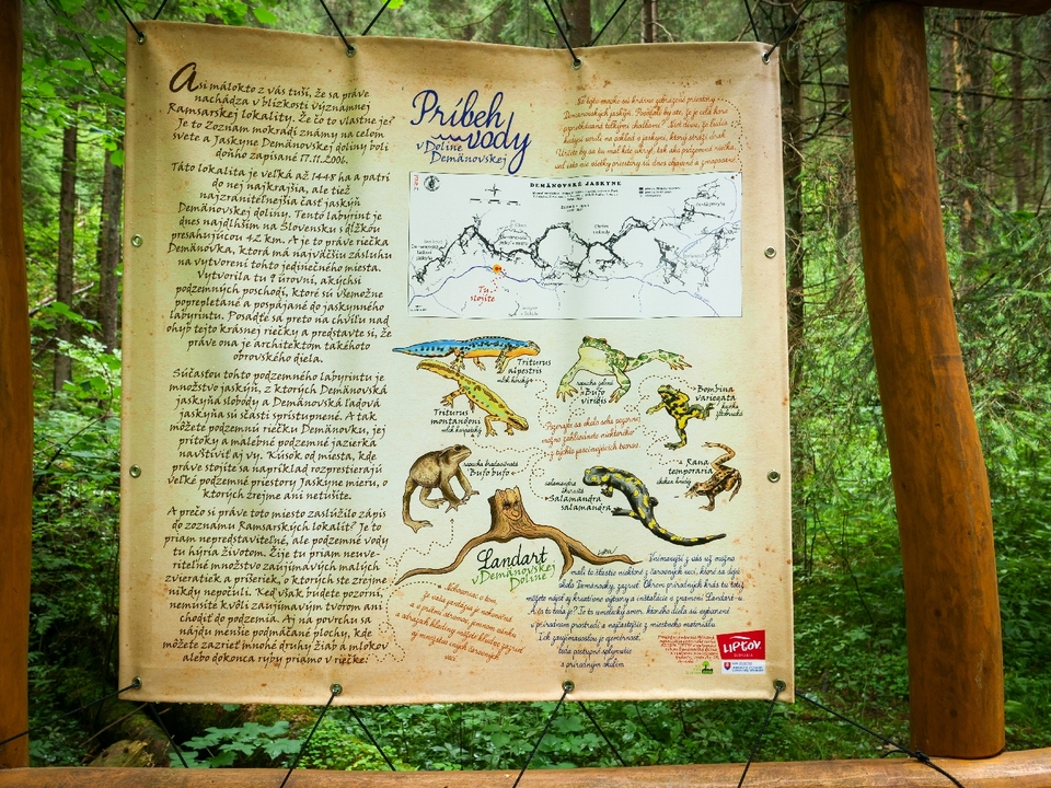 Inšpiráciou pre vznik náučného chodníka aj jeho hlavným prvkom je tunajšia riečka Demänovka. Chodník s názvom Príbeh vody, v dĺžke zhruba 4 kilometre, začína na vstupe do Demänovskej doliny a prechádzka pozdĺž riečky Demänovka, jeho nosná časť prechádzka cez Demänovskú ľadovú a Demänovskú jaskyňou slobody.