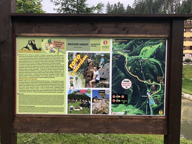 Medvedia cesta je určená pre detských i dospelých návštevníkov Hrabovskej doliny a okolia. Cesta ich nenáročným spôsobom oboznámi so životom medveďa hnedého, ktorý sa v tejto lokalite vyskytuje. Okrajovo približuje aj ostatnú faunu a flóru doliny. V rámci nenáročnej trojkilometrovej pešej trasy sa návštevníci zastavia pri siedmich stanovištiach Medvedej cesty a získajú základné informácie o medveďovi hnedom a jeho zvyklostiach. Okrem textových informačných tabúľ cestu tvoria fototapety, lezecká atrakcia, medvedí bunker či medvedia „kúpeľňa“.