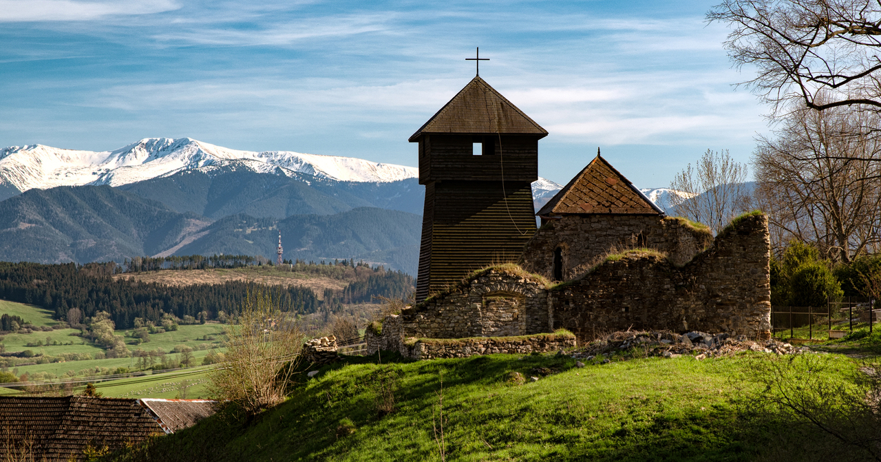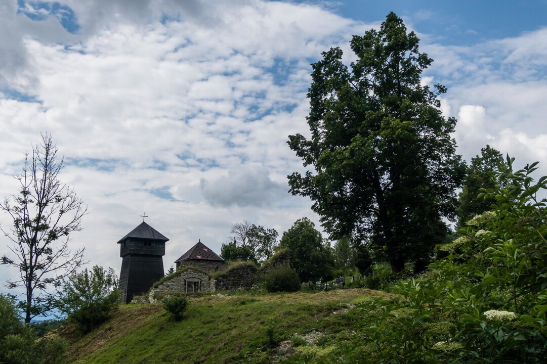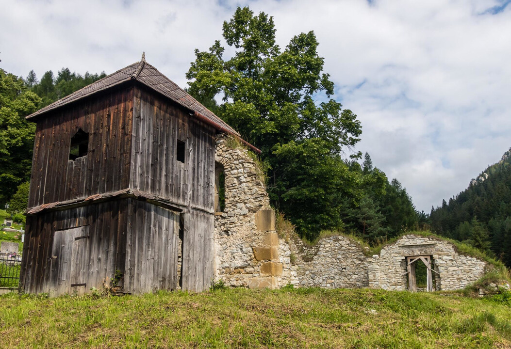 Auto som odstavil na konci dediny pri drevenej zvonici, z ktorej sa vykľula zrúcanina starého kostolíka z 13. storočia, ktorý v roku 1805 vyhorel. Najprv odbočujeme do poslednej uličky v dedine, mapa však v tomto prípade klame a cesta beznádejne končí pri bráne, za ktorou sa majiteľ prekrikuje so štekajúcimi psami a zrejme po stýkrát niekomu vysvetľuje, že správna trasa vedie až vyššie vo svahu, treba len prejsť kúštik hlbšie do doliny.