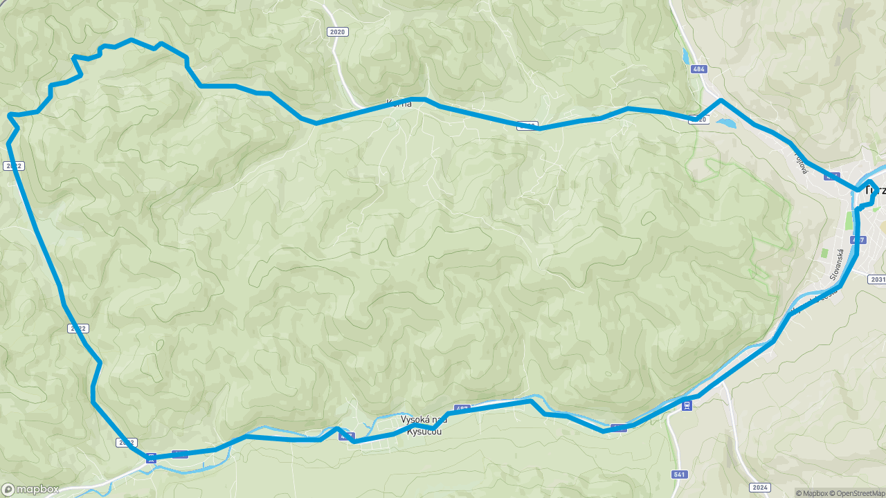 ⦁ cez Vysokú nad Kysucou až do Turzovky po hlavnej ceste (časť vedie samostatným pruhom pre cyklistov)