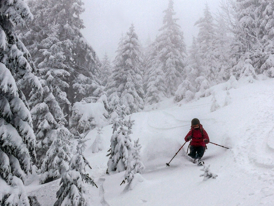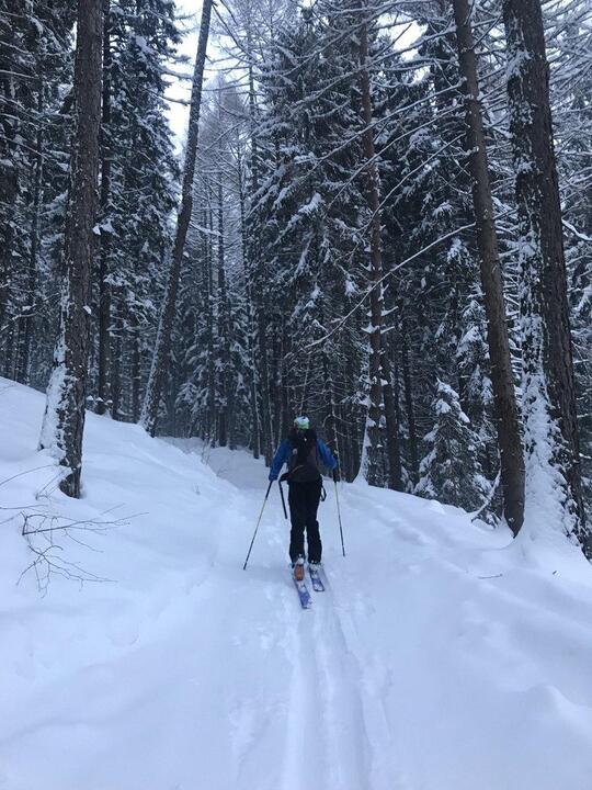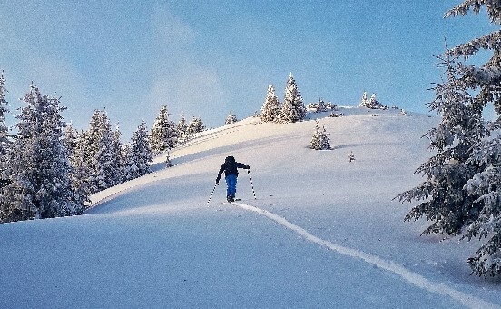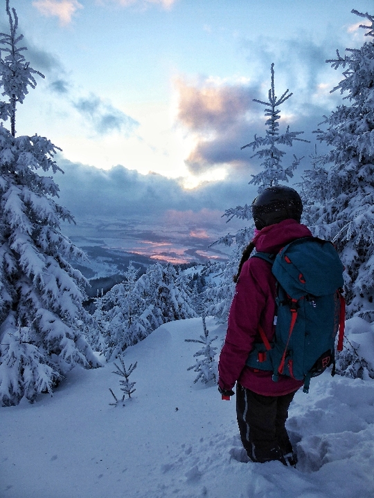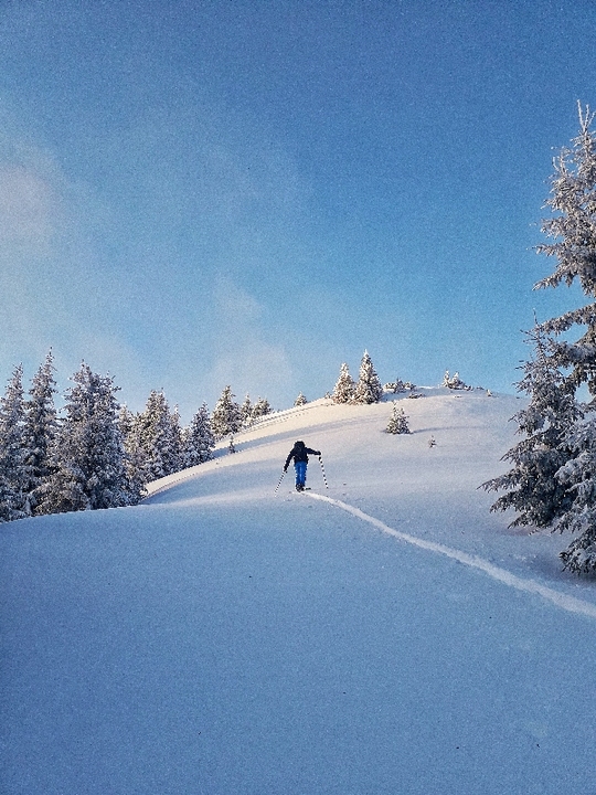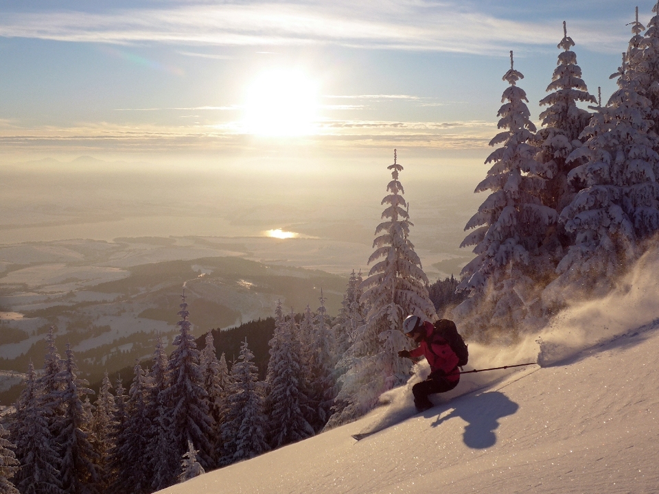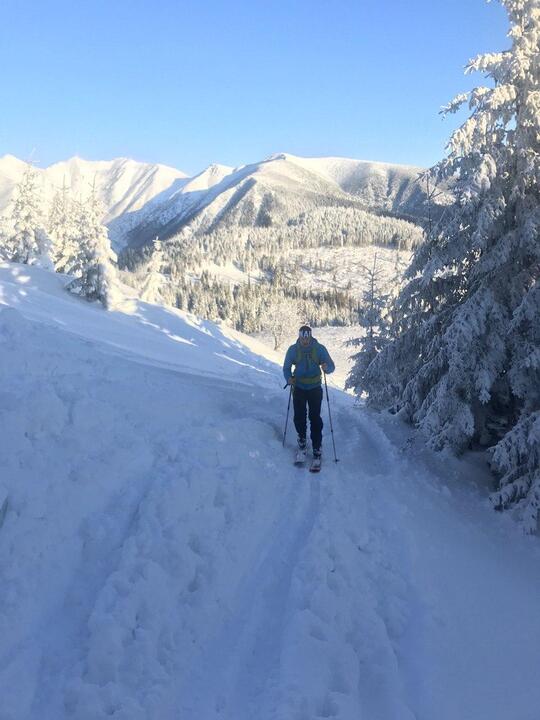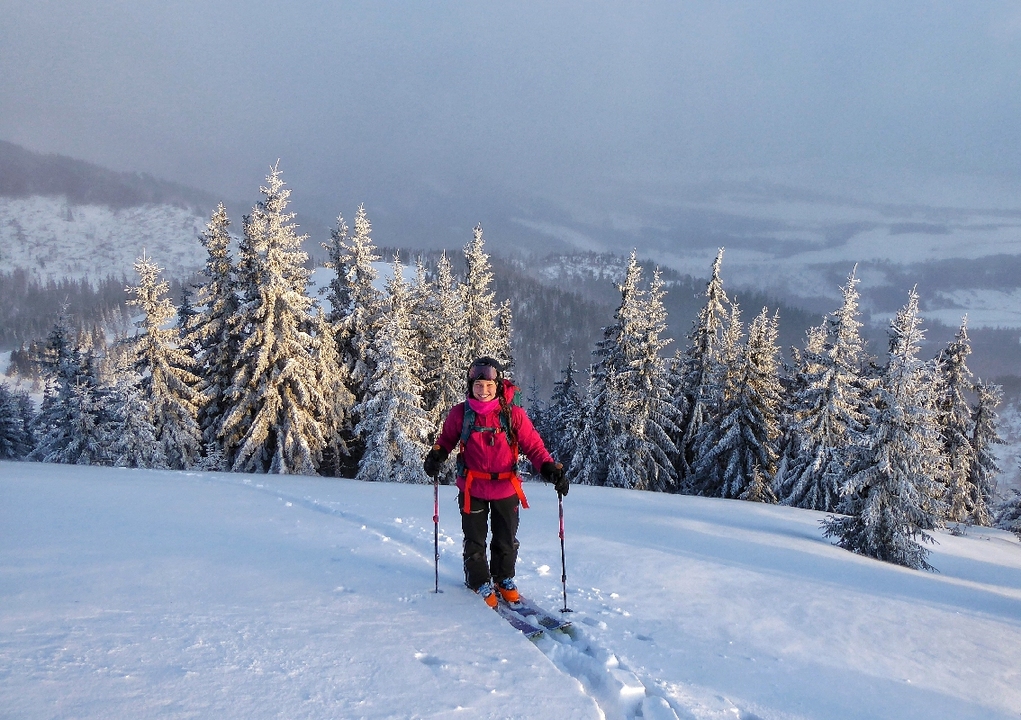 Trasa: Bobrovecká Vápenica (750 m n.m.) - Babky (1566 m n.m.) - Malá kopa (1540 mn.m.) - Červenec (Chata pod Náružím) (1420 mn.m.) - Bobrovecká Vápenica (750 m n.m.) Oblasť: Západné Tatry Prevýšenie: 960 m Uzávera: skialpinistická sezóna trvá 15.12 - 15.4. Najlepšie obdobie pri dostatku snehu celú sezónu Potrebné vybavenie: lavínová výbava Popis trasy: Cieľom je vrchol Babiek (1566 mn.m.), ktorý síce nepatrí medzi tie najvyššie, no tým že je vysunutý mimo hlavného hrebeňa, ponúka výhľady na Liptovskú kotlinu, Nízke Tatry, Chočské vrchy a na východ do doliny Parichvost. Svahy Babiek sú trávnaté, s riedkym lesom, čo je pre lyžovanie ideálne. Výhodou je, že trasa nie je výrazne ohrozovaná lavínami. Dá sa bezpečne absolvovať aj pri zhoršených podmienkach, napríklad aj v prípade zvýšeného lavínového nebezpečenstva (3. stupeň z 5). Výstup: Okolie Babiek a Červenca je pre skialpinistov obľúbenou lokalitou. Stopa je tu natiahnutá takmer vždy. Výstup začína na parkovisku v Bobroveckej Vápenici. Parkovisko je položené relatívne nízko, vo výške cca 750 m n.m. Počas slabších zím alebo na začiatku sezóny sa kvôli nedostatku snehu nedá vždy začať šliapať na pásoch hneď z parkoviska. V prípade dostatku snehu sa dá celá túra absolvovať na pásoch, mačky nie sú potrebné. Prvá časť výstupu vedie po lúke a po asi 500 metroch vedie do lesa. Začiatok výšľapu v lese je strmý, no postupne sa trasa pripojí na lesnú cestu, po ktorej je už výstup príjemný a mierny. Po asi dvoch kilometroch sa objaví odpočívadlo, zároveň aj križovatka chodníkov. Vľavo smer Babky, vpravo pokračuje lesná cesta na Chatu na Červenci. Od odpočívadla trasa na Babky kopíruje letný turistický chodník. Ide o najproblematickejší úsek výstupu, vzhľadom na to, že sklon chodníka sa zvyšuje a priesek medzi stromami je úzky. Záverečná pasáž je už nad pásmom lesa, objavia sa výhľady. Skialpinistická stopa vedie často v ľavej časti, pretože na hrebeni je veterno a nízke stromy ponúkajú príjemné závetrie. Vrchol býva často vyfúkaný, ale poskytuje dostatok miesta na prezutie. Pri nedostatku času či síl je možné výlet skončiť už tu a zlyžovať po výstupovej trase alebo cez lesíky a rúbaniská späť ku autu. Za dobrých snehových podmienok, hlavne v prašane, to vie byť skvelá lyžovačka. Trasa ale pokračuje smer Chata pod Náružím (Červenec). Po krátkom, miernom zjazde na pásoch po hrebeni, čaká už len jeden kopček na Malú Kopu - vrchol priamo nad Chatou. Tu je potrebné prezuť pásy. Zjazd: Vedie z Malej kopy cez riedku kosodrevinu priamo k chate. Sklon presahuje 30°. Nie je síce dlhý, ale dá sa tu užiť lyžovačka hlavne pri dostaku snehu, keď je inde zvýšené lavínové nebezpečenstvo. Príjemným spestrením je zastaviť sa a občerstviť na chate. Od samotnej chaty nasleduje už iba jednoduchý zjazd po lesnej ceste späť k autu. Zjazdy tu nie sú veľmi náročné a väčšinu sezóny by ich mal zvládnuť aj slabší lyžiar. Zaujímavosti na trase: Partizánsky bunker z obdobia 2.svetovej vojny - Nachádza sa zhruba v strede výstupu po lesnej ceste po pravej strane. Ide o skalný previs, v ktorom v zime 1945 osem mužov z Bobrovca prežilo niekoľko týždňov počas 2. svetovej vojny. NPR Sokol - Mních - Nachádzajú sa tu vzácne druhy rastlín a živočíchov viazané na skalnatý reliéf a vápencové podložie. Amatérske lyžiarske preteky Cena Červenca - konajú sa v prvý marcový víkend (sobota) od roku 1970. Štart je na Veľkej kope a cieľ pri chate. Toto podujatie má nielen športový, ale aj spoločenský rozmer s výbornou atmosférou lokálneho preteku. Dostupnosť a možnosti parkovania: Autobusom: Zastávka Jalovec Autom: Neplatené parkovisko priamo na začiatku trasy, pozor, vedie sem cesta 3.triedy, v zime slabšie udržiavaná, môžu prekvapiť záveje Možnosti občerstvenia a ubytovania: Chata pod Náružím ( Chata na Červenci) - kuchyňa tu nefunguje, služby sú obmedzené na bufet s nápojmi a drobným občerstvením. Chata ponúka možnosť ubytovania v nižšom štandarde bez elektriny či sprchy. Ohľadom rezervácie nocľahu je vhodné informovať s časovým predstihom. Pozor, nie je možná platba kartou. Chata je otvorená počas všetkých víkendov a sviatkov. V okolí parkoviska sa nachádza niekoľko zariadení, ktoré ponúkajú aj reštauračné i ubytovacie služby - Hotel Mních, či bohatá ponuka ubytovania v súkromí v obci Bobrovec, či okolitých obciach. Poznámky a tipy: + výhľady prívetivosť a bezpečnosť trasy infraštruktúra (parkovisko, chata) - vysoká návštevnosť nižšia nadmorská výška - kratšia sezóna, pri slabších zimách hrozí nedostatok snehu