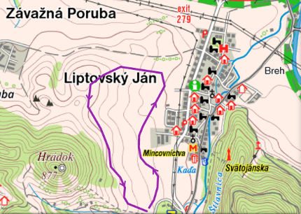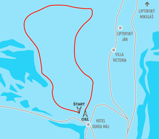 Bežkárska trať v tejto obci známej svojimi termálnymi prameňmi začína pri cykloturistickom rázcestí v blízkosti Hotela SOREA Máj, kde je možné bezplatne parkovať. Trasa nemá jednoznačne určenú líniu. V prípade dobrých podmienok vedie spravidla po poľnú cestu smerujúcu do Závažnej Poruby a späť. Postupne kopíruje lúky popri kopci Hrádok nad poľnohospodárskym družstvom. Okruh má približne 3 až 4 km. Trať ponúka nádherné výhľady na Kriváň. Jej orientáciu sľubuje slnkom zaliate trate predovšetkým v dopoludňajších hodinách. Po dobrom bežkovaní by bolo škoda nevyužiť možnosť termálnych prameňov v blízkom okolí. Úpravu tejto trasy zabezpečuje obec Liptovský Ján.